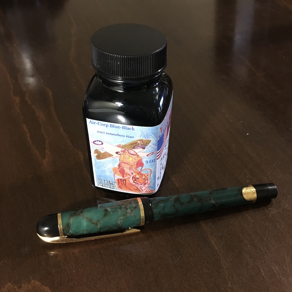 I have enjoyed writing with it so much that I have used it extensively for writing in my journal and even some other writing in the past year. Given that I hope to avoid going down the path of obsession over fountain pens, this may be the only ink I use for a long time. I am very happy with the results, and can heartily recommend Noodler’s Aircorp for anyone looking for beautiful, distinctive ink for everyday writing.