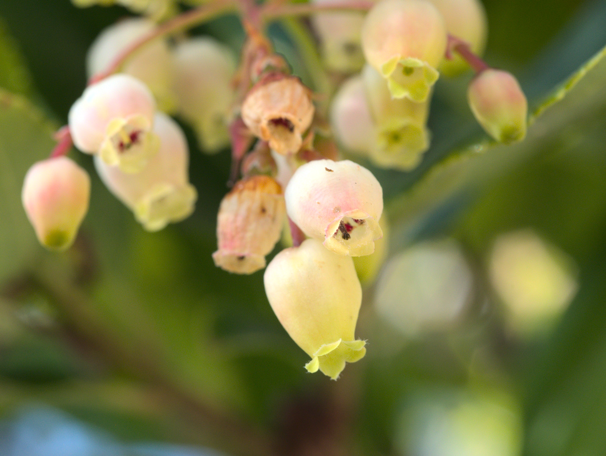 This tree is outside the kitchen at work. It has yellow to red fruits that kind of remind me of lychee. This week, I noticed that it also has adorable little bell shaped flowers. I took a moment to snap a few photos while I was taking a break the other day.
